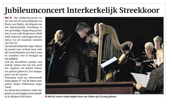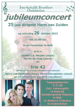 In 2013 vierde Harm van Zuiden zijn 25 jarig jubileum als dirigent van het koor met als hoogtepunt het najaarsconcert waarin Trio 42 uit Utrecht als gastmuzikanten waren uitgenodigd.