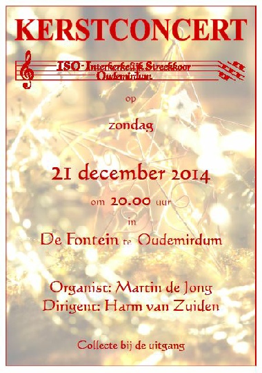 Op zaterdagmiddag 20 december 2014 om 15.00 uur heeft een kleine groep koorleden o.l.v. Harm van Zuiden een aantal liederen á capella gezongen.