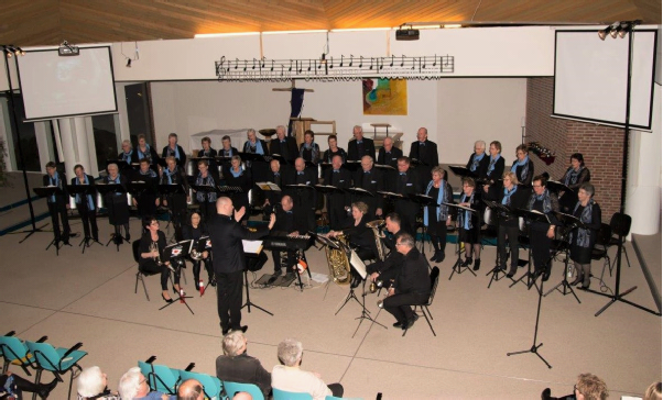 De uitvoering van het oratorium “Schepping” m.m.v. het koperkwintet van Pro Rege uit Heerenveen.